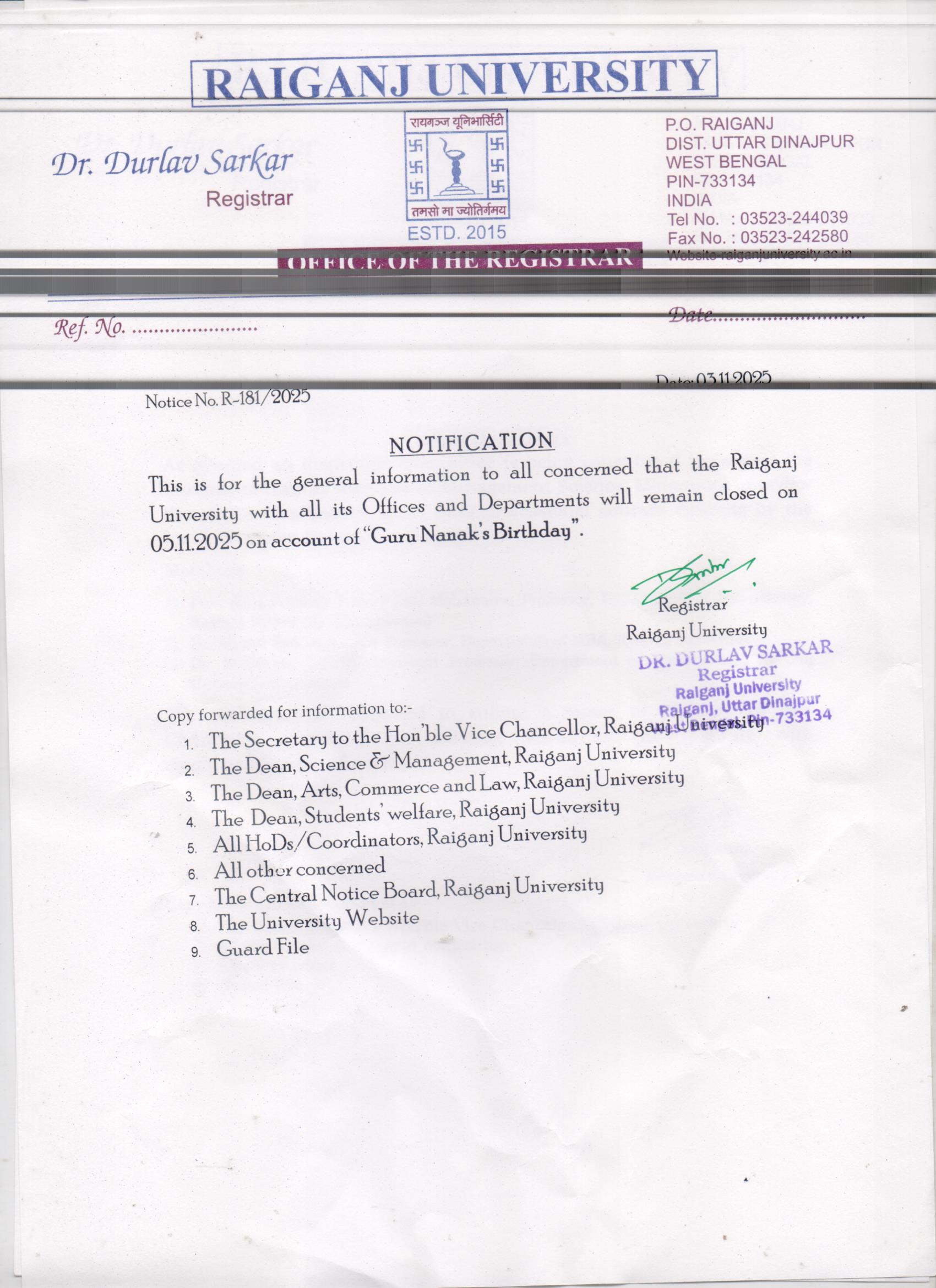 - Notice regarding D.Litt. Viva-voce of Dr. Prohlad Roy, Dept. of Bengali