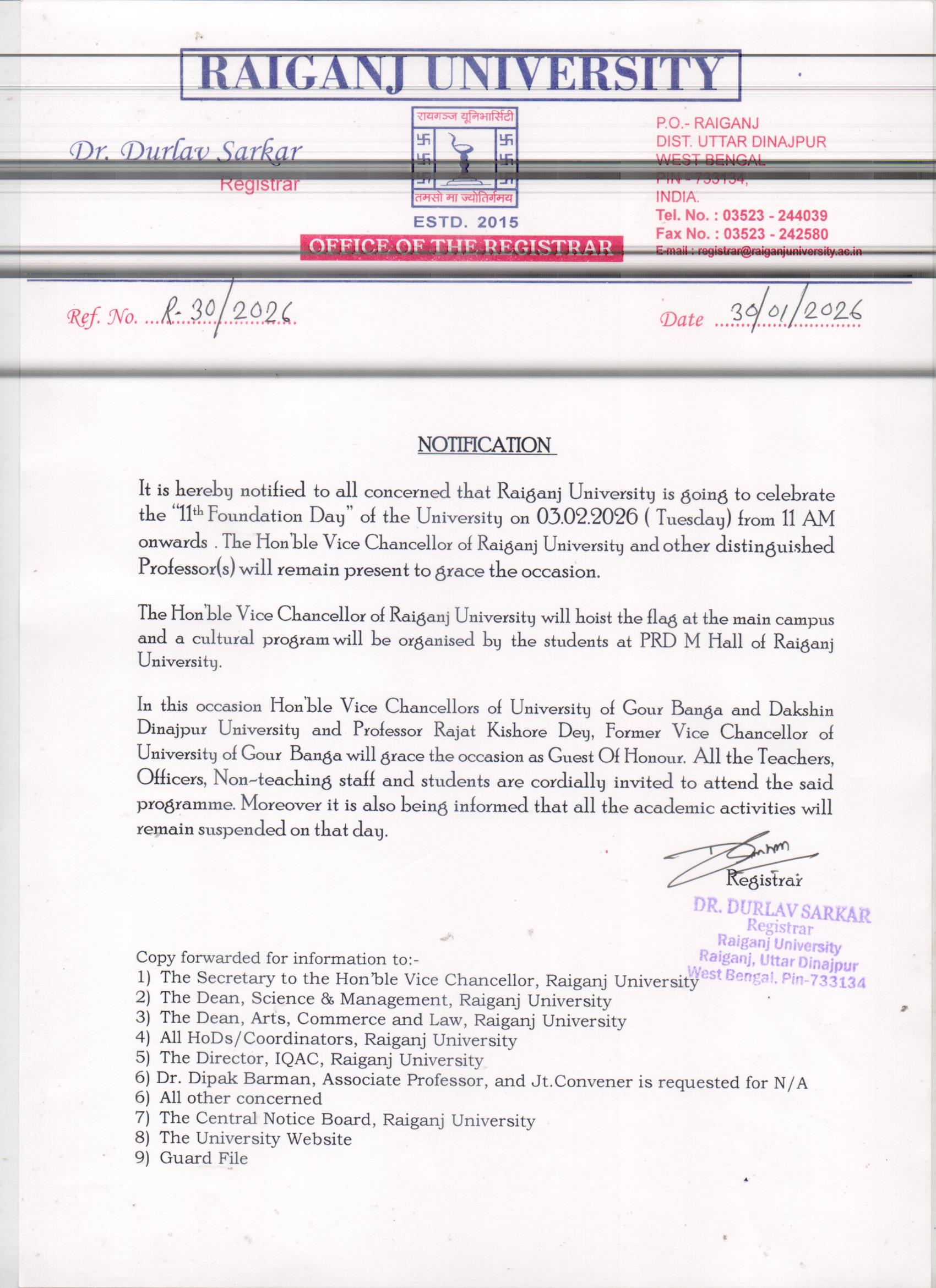 - Call for paper. Raiganj University Journal of History