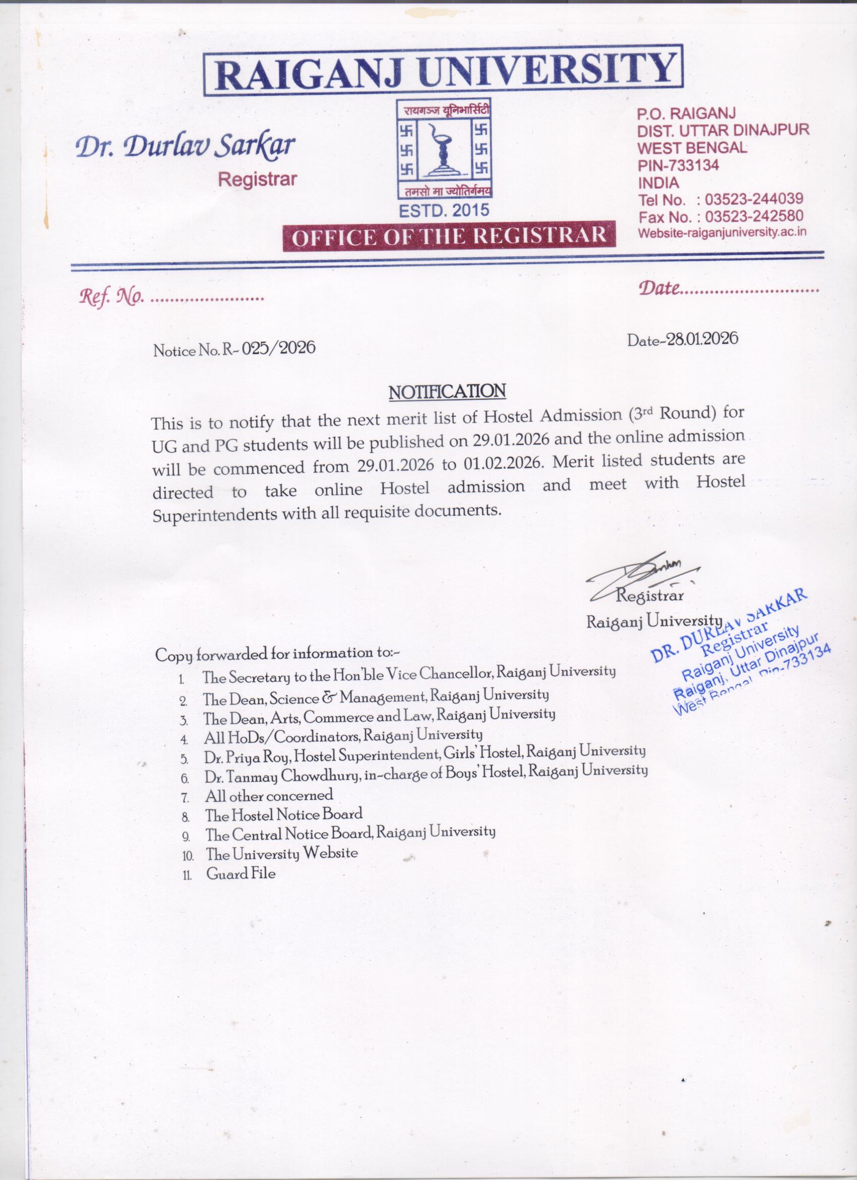 - Registration date extension notice for UG-1st, PG-1st & Ph.D. students